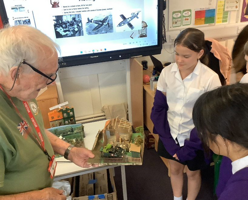 As part of our History topic, we have been learning all about World War 1 and World War 2. To help bring our learning to life and to understand the devastating impact war has on people, we were very fortunate to welcome a special visitor, 'Grandad Terry.' Grandad Terry was a young child during WW2, and he shared with us some of his scary stories and experiences he had lived through. We were all amazed at how much courage, bravery and resilience Terry has! Following on from WW2, Terry was also part of the RAF Special Forces unit during the Cold War. As a hobby, Grandad Terry shared with us some of the amazing models he makes to visually represent the war. We are very grateful for Grandad Terry coming to visit – it really made us all think about how fortunate we are to live in a safe country, thanks to those that came before us.